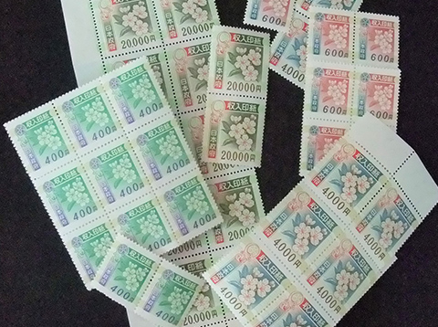 記念切手の相場が下がっています。普通、記念切手、収入印紙、ハガキの書き損じ、テレカ等当店で現金化しませんか?プレミア切手や建退共証紙も高価買取いたします。