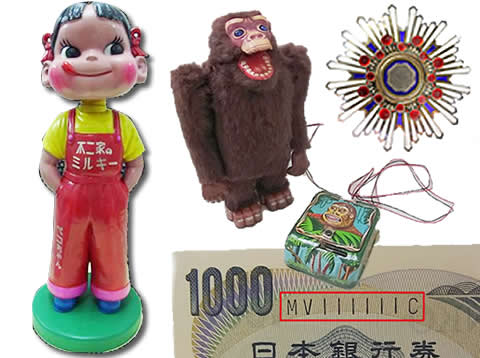 不二家のペコちゃん人形、ゾロ目の5千円札、ツアイス双眼鏡、オーストラリア銀貨等など・・・珍品も大歓迎です!